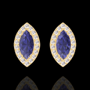 « L'ATELIER » Nº201333Boucles d'oreilles Or jaune 18 carats - Saphir bleu Marquise 0.3 carat (2 X) - Halo Diamant