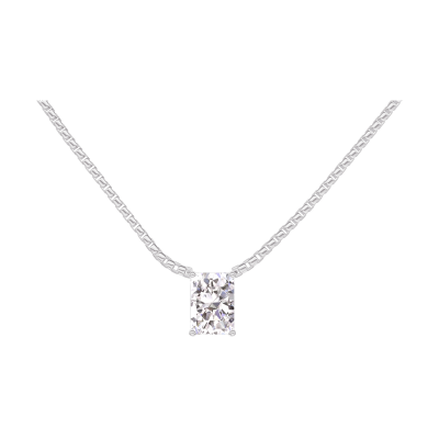 « L'ATELIER » Nº201512Collier Or blanc 9 carats - Diamant Rectangle 0.3 carat - Chaîne Vénitienne