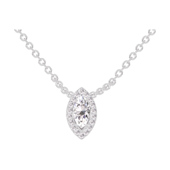 Collier Or blanc 9 carats - Diamant Marquise 0.3 carat - Halo Diamant - Chaîne Forçat