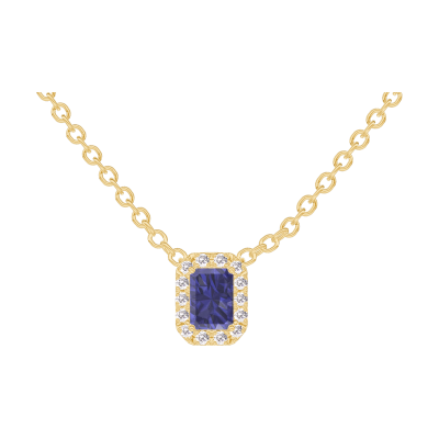 « L'ATELIER » Nº 202089Collier Or jaune 18 carats - Saphir bleu Rectangle 0.3 carat - Halo Diamant - Chaîne Forçat