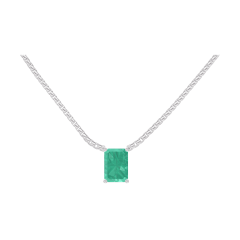 Pourquoi nous faire confiance ? « L'ATELIER » Nº 202280 Collier Or blanc 9 carats - Émeraude Rectangle 0.3 carat - Chaîne Vénitienne