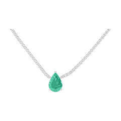 Collier Or blanc 9 carats - Émeraude Poire 0.3 carat - Chaîne Vénitienne