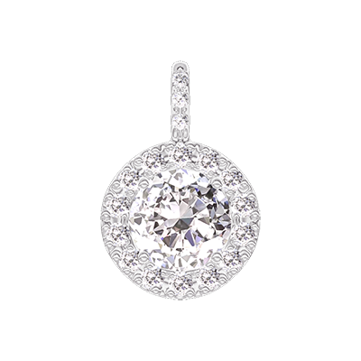 « L'ATELIER » Nº202456Pendentif Or blanc 9 carats - Diamant Rond 0.3 carat - Halo Diamant - Sertissage Diamant - Pas de chaîne 4.3 (3)