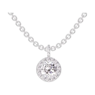« L'ATELIER » Nº 202472Pendentif Or blanc 9 carats - Diamant Rond 0.3 carat - Halo Diamant - Sertissage Diamant - Chaîne Forçat 4.3 (3)