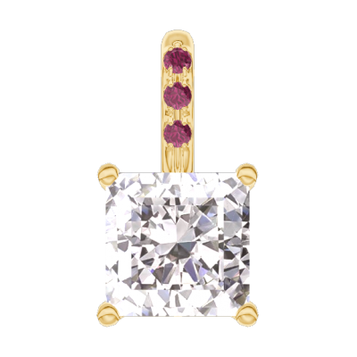 « L'ATELIER » Nº202602Pendentif Or jaune 9 carats - Diamant Princesse 0.3 carat - Sertissage Rubis - Pas de chaîne