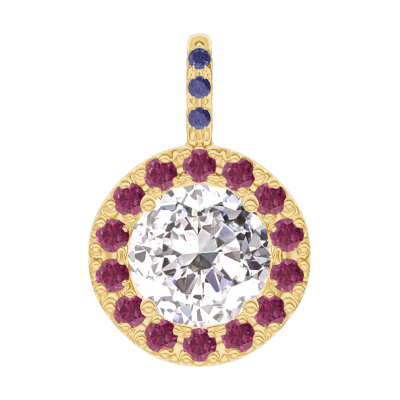 « L'ATELIER » Nº203662Pendentif Or jaune 9 carats - Diamant synthétique Rond 0.3 carat - Halo Rubis - Sertissage Saphir bleu - Pas de chaîne 4.3 (3)
