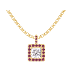 « L'ATELIER » Nº 203882Pendentif Or jaune 9 carats - Diamant synthétique Princesse 0.3 carat - Halo Rubis - Sertissage Rubis - Chaîne Vénitienne