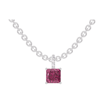 « L'ATELIER » Nº 204919Pendentif Or blanc 18 carats - Rubis Princesse 0.3 carat - Sertissage Diamant - Chaîne Forçat