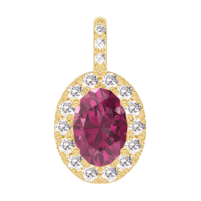 « L'ATELIER » Nº 205333Pendentif Or jaune 18 carats - Rubis Ovale 0.3 carat - Halo Diamant - Sertissage Diamant - Pas de chaîne