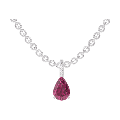 « L'ATELIER » Nº 205495Pendentif Or blanc 18 carats - Rubis Poire 0.3 carat - Sertissage Diamant - Chaîne Forçat 4.8 (12)