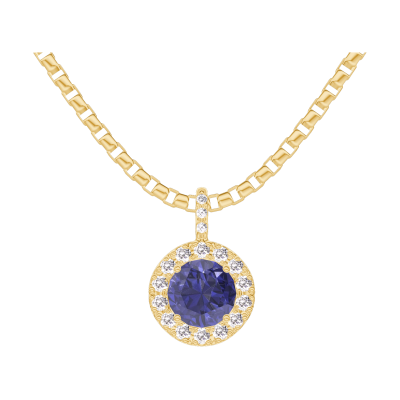 « L'ATELIER » Nº205942Pendentif Or jaune 9 carats - Saphir bleu Rond 0.3 carat - Halo Diamant - Sertissage Diamant - Chaîne Vénitienne 4.3 (3)