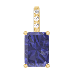 Pendentif Or jaune 9 carats - Saphir bleu Rectangle 0.3 carat - Sertissage Diamant - Pas de chaîne