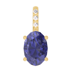 « L'ATELIER » Nº 206438Pendentif Or jaune 9 carats - Saphir bleu Ovale 0.3 carat - Sertissage Diamant - Pas de chaîne