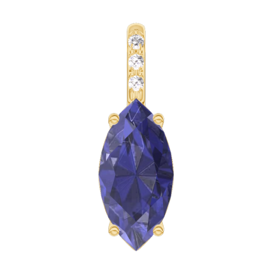 « L'ATELIER » Nº206822Pendentif Or jaune 9 carats - Saphir bleu Marquise 0.3 carat - Sertissage Diamant - Pas de chaîne