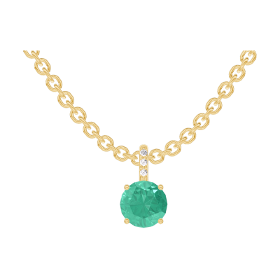 « L'ATELIER » Nº207029Pendentif Or jaune 18 carats - Émeraude Rond 0.3 carat - Sertissage Diamant - Chaîne Forçat 5 (8)