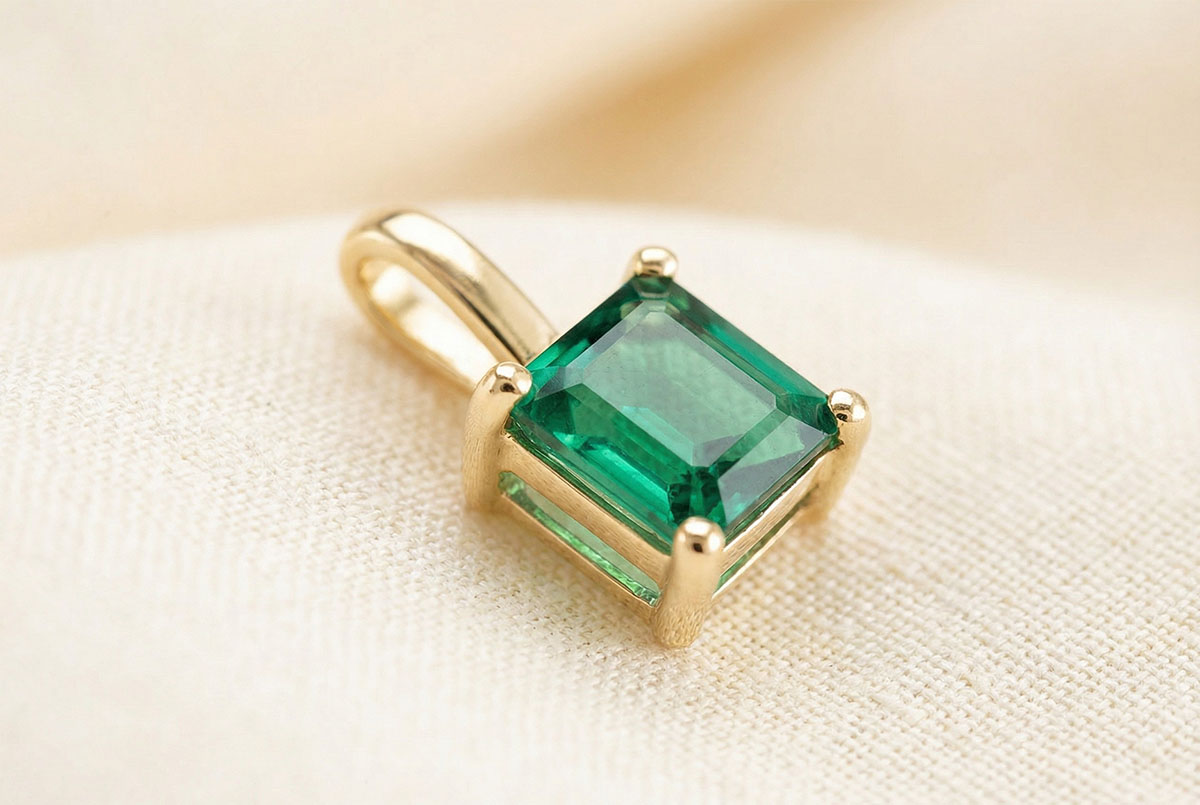 « L'ATELIER » Nº 207202Pendentif Or jaune 9 carats - Émeraude Princesse 0.3 carat - Pas de chaîne