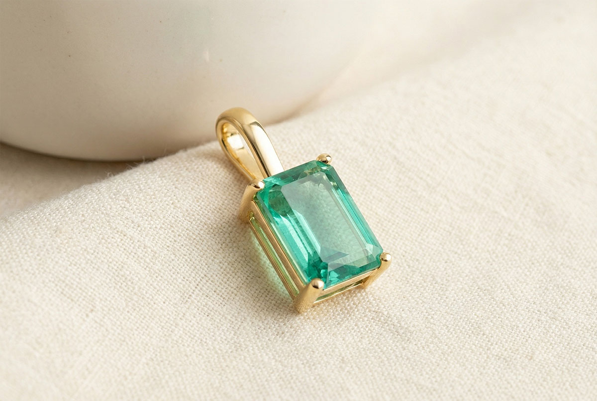 « L'ATELIER » Nº 207393Pendentif Or jaune 18 carats - Émeraude Rectangle 0.3 carat - Pas de chaîne