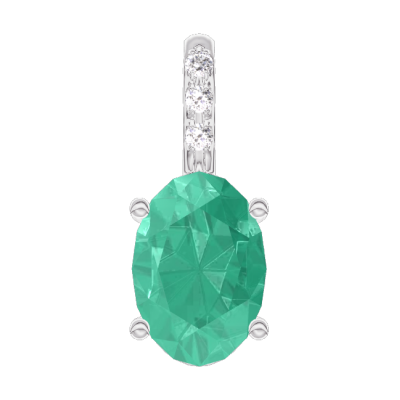 « L'ATELIER » Nº207592Pendentif Or blanc 9 carats - Émeraude Ovale 0.3 carat - Sertissage Diamant - Pas de chaîne