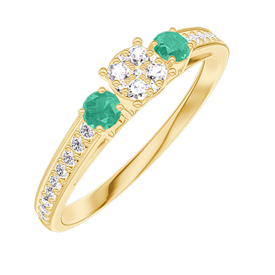 « L'ATELIER » Nº 209085Bague Or jaune 18 carats - Cluster de diamants naturels Rond équivalent 0.3 - Pierres de côté Émeraude - Sertissage Diamant 4.8 (36)