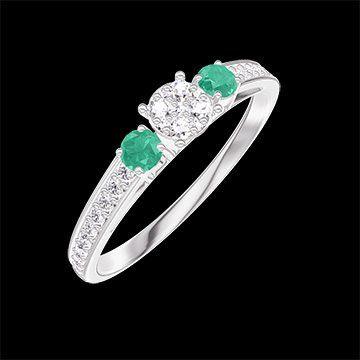 « L'ATELIER » Nº209087Bague Or blanc 18 carats - Cluster de diamants naturels Rond équivalent 0.3 - Pierres de côté Émeraude - Sertissage Diamant 4.8 (36)