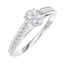 Pourquoi nous faire confiance ? « L'ATELIER » Nº 209308 Bague Or blanc 9 carats - Cluster de diamants naturels Ovale équivalent 0.3 - Sertissage Diamant