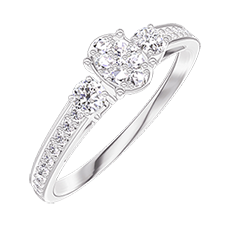 Pourquoi nous faire confiance ? « L'ATELIER » Nº 209327 Bague Or blanc 18 carats - Cluster de diamants naturels Ovale équivalent 0.3 - Pierres de côté Diamant - Sertissage Diamant