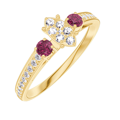 « L'ATELIER » Nº209546Bague Or jaune 9 carats - Cluster de diamants naturels Marquise équivalent 0.3 - Pierres de côté Rubis - Sertissage Diamant