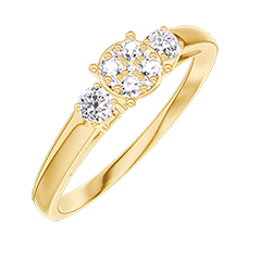 Pourquoi nous faire confiance ? « L'ATELIER » Nº 209621 Bague Or jaune 18 carats - Cluster de diamants naturels Rond équivalent 0.5 - Pierres de côté Diamant