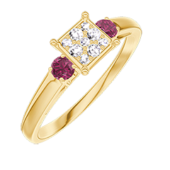 Pourquoi nous faire confiance ? « L'ATELIER » Nº 209742 Bague Or jaune 9 carats - Cluster de diamants naturels Princesse équivalent 0.5 - Pierres de côté Rubis