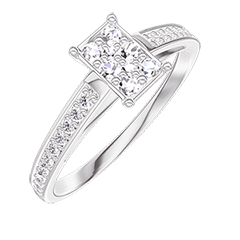 Pourquoi nous faire confiance ? « L'ATELIER » Nº 209807 Bague Or blanc 18 carats - Cluster de diamants naturels Rectangle équivalent 0.5 - Sertissage Diamant