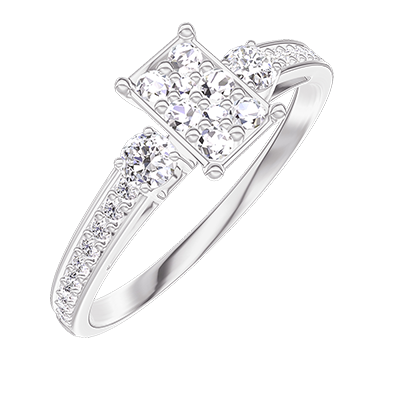 « L'ATELIER » Nº 209827Bague Or blanc 18 carats - Cluster de diamants naturels Rectangle équivalent 0.5 - Pierres de côté Diamant - Sertissage Diamant
