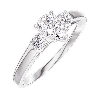 « L'ATELIER » Nº210023Bague Or blanc 18 carats - Cluster de diamants naturels Poire équivalent 0.5 - Pierres de côté Diamant