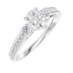 Pourquoi nous faire confiance ? « L'ATELIER » Nº 210028 Bague Or blanc 9 carats - Cluster de diamants naturels Poire équivalent 0.5 - Pierres de côté Diamant - Sertissage Diamant