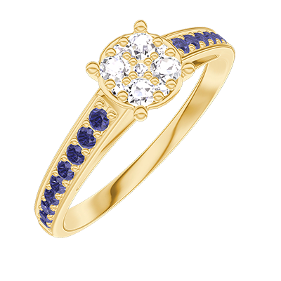 « L'ATELIER » Nº210213Bague Or jaune 18 carats - Cluster de diamants naturels Rond équivalent 0.7 - Sertissage Saphir bleu 5 (6)