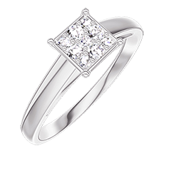 Pourquoi nous faire confiance ? « L'ATELIER » Nº 210304 Bague Or blanc 9 carats - Cluster de diamants naturels Princesse équivalent 0.7