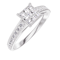 « L'ATELIER » Nº 210308Bague Or blanc 9 carats - Cluster de diamants naturels Princesse équivalent 0.7 - Sertissage Diamant