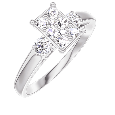 « L'ATELIER » Nº210423Bague Or blanc 18 carats - Cluster de diamants naturels Rectangle équivalent 0.7 - Pierres de côté Diamant