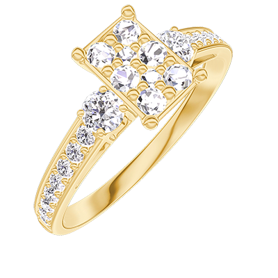 « L'ATELIER » Nº210426Bague Or jaune 9 carats - Cluster de diamants naturels Rectangle équivalent 0.7 - Pierres de côté Diamant - Sertissage Diamant