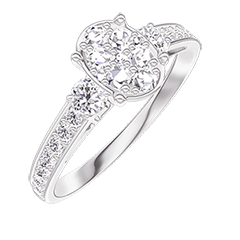 Bague Or blanc 18 carats - Cluster de diamants naturels Ovale équivalent 0.7 - Pierres de côté Diamant - Sertissage Diamant