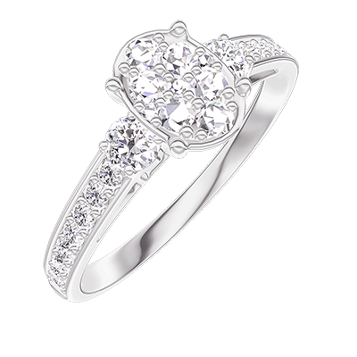 « L'ATELIER » Nº 210528Bague Or blanc 9 carats - Cluster de diamants naturels Ovale équivalent 0.7 - Pierres de côté Diamant - Sertissage Diamant