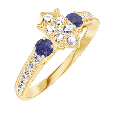« L'ATELIER » Nº210766Bague Or jaune 9 carats - Cluster de diamants naturels Marquise équivalent 0.7 - Pierres de côté Saphir bleu - Sertissage Diamant