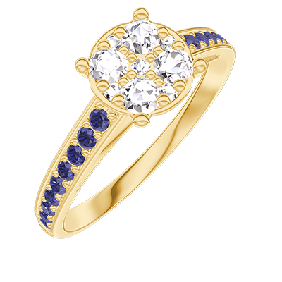 « L'ATELIER » Nº210813Bague Or jaune 18 carats - Cluster de diamants naturels Rond équivalent 1 - Sertissage Saphir bleu 4.8 (11)