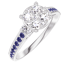 Bague Or blanc 18 carats - Cluster de diamants naturels Rond équivalent 1 - Pierres de côté Diamant - Sertissage Saphir bleu