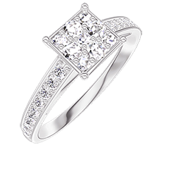 Bague Or blanc 18 carats - Cluster de diamants naturels Princesse équivalent 1 - Sertissage Diamant