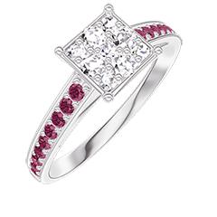 Bague Or blanc 18 carats - Cluster de diamants naturels Princesse équivalent 1 - Sertissage Rubis