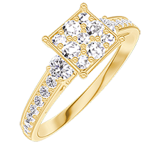 « L'ATELIER » Nº 210926Bague Or jaune 9 carats - Cluster de diamants naturels Princesse équivalent 1 - Pierres de côté Diamant - Sertissage Diamant