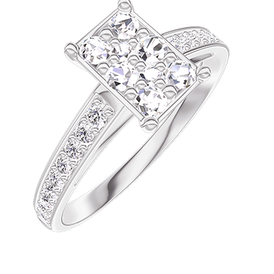 « L'ATELIER » Nº 211007Bague Or blanc 18 carats - Cluster de diamants naturels Rectangle équivalent 1 - Sertissage Diamant 4.6
