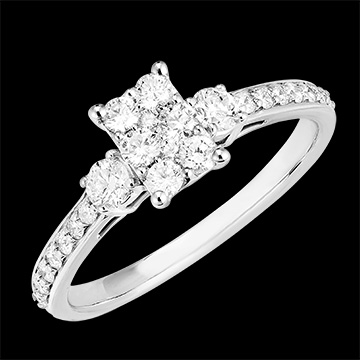 « L'ATELIER » Nº 211028Bague Or blanc 9 carats - Cluster de diamants naturels Rectangle équivalent 1 - Pierres de côté Diamant - Sertissage Diamant 4.6