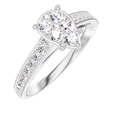 Bague Or blanc 9 carats - Cluster de diamants naturels Poire équivalent 1 - Sertissage Diamant