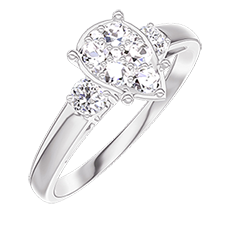 Bague Or blanc 18 carats - Cluster de diamants naturels Poire équivalent 1 - Pierres de côté Diamant